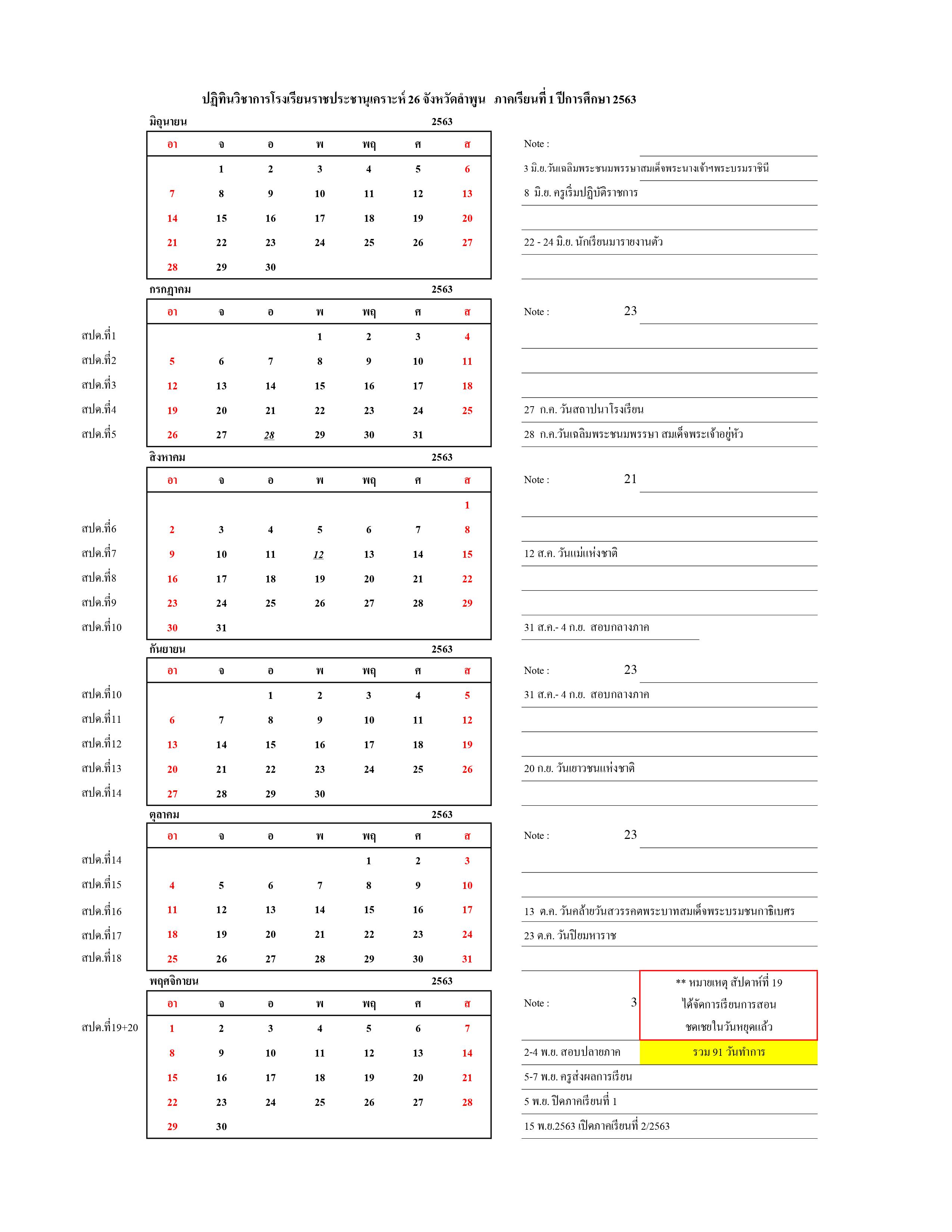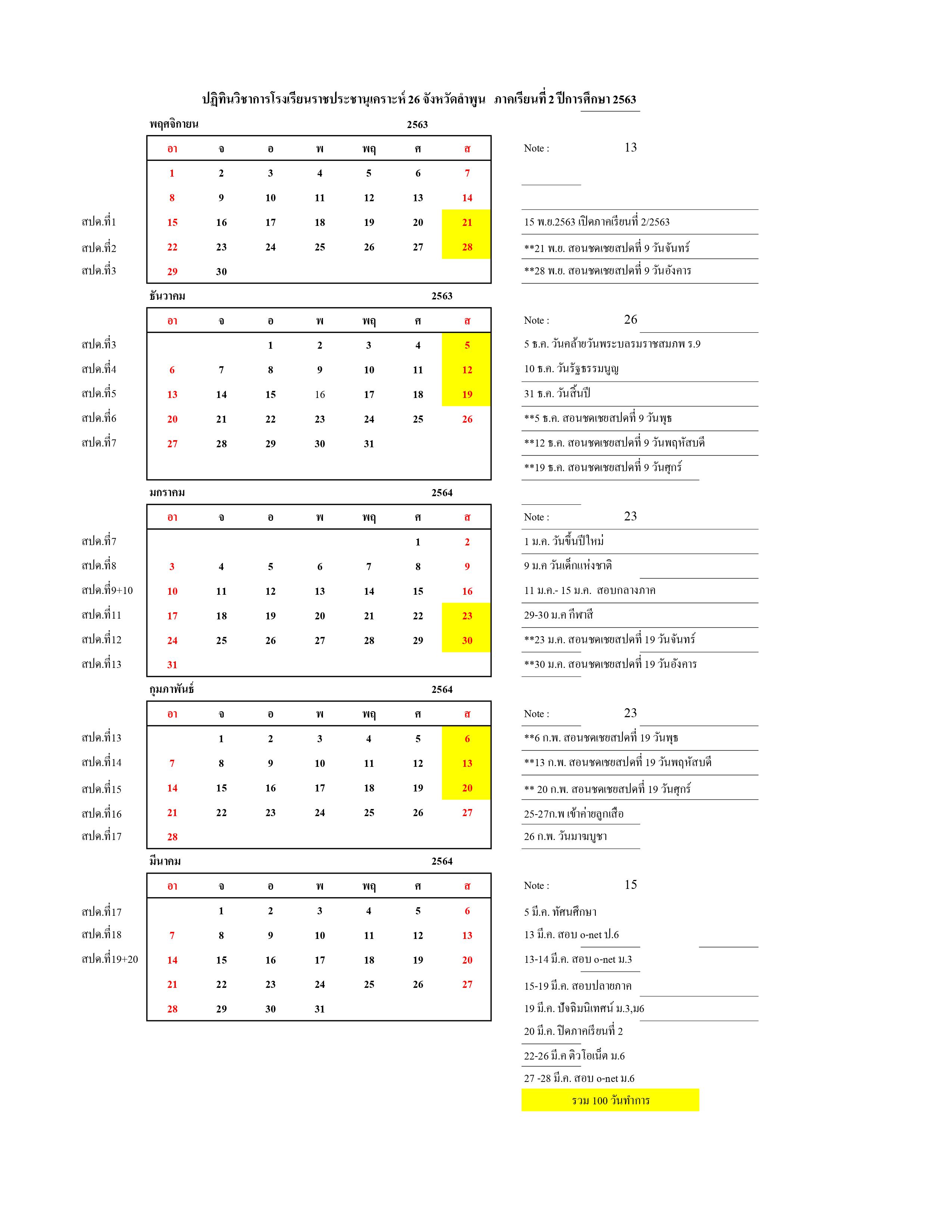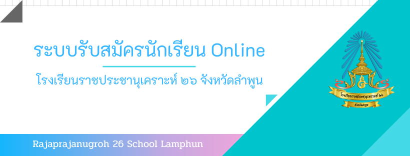 ประกาศรายชื่อนักเรียนที่ได้รับการคัดเลือกเข้าเรียนในระดับชั้นมัธยมศึกษาปีที่ 1 และชั้นมัธยมศึกษาปีที่ 4 ประจำปีการศึกษา 2564 รอบโควตา สามารถรายงานตัวเพื่อยืนยันการเข้าเรียนในวันที่ 31 มีนาคม - 1 เมษายน พ.ศ.2564 ระหว่างเวลา 09.00-16.00 น. ณ ห้องวิชาการโรงเรียนราชประชานุเคราะห์ 26 จังหวัดลำพูน