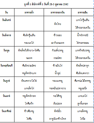 รายการอาหารนักเรียน สัปดาห์ที่ 1 วันที่ 28 - 3 ตุลาคม 2562